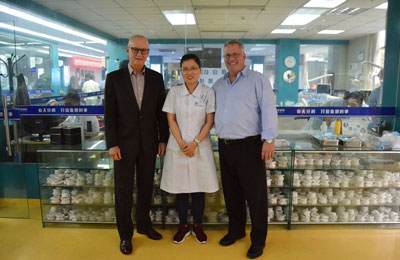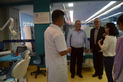 专家组首先来到我院(1)诊室,与春天牙科院长李纪和华西口腔医学院种植学硕士研究生,我院的种植牙修复专家张旭,进行了合影和相关学术交流。